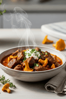 Herzhaftes Hirschgulasch mit aromatischen Waldpfifferlingen: Das Rezept für zartes Fleisch und eine…