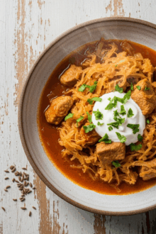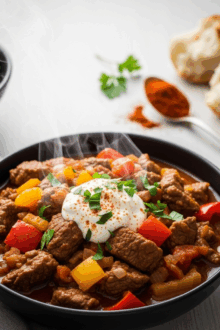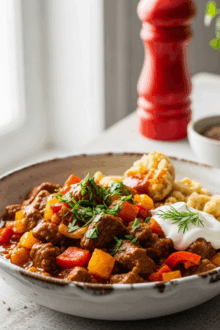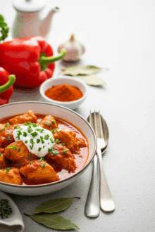 Herzhaftes Paprika Hähnchen Gulasch mit cremiger Soße Ein Paprika Hähnchen Gulasch ist…