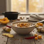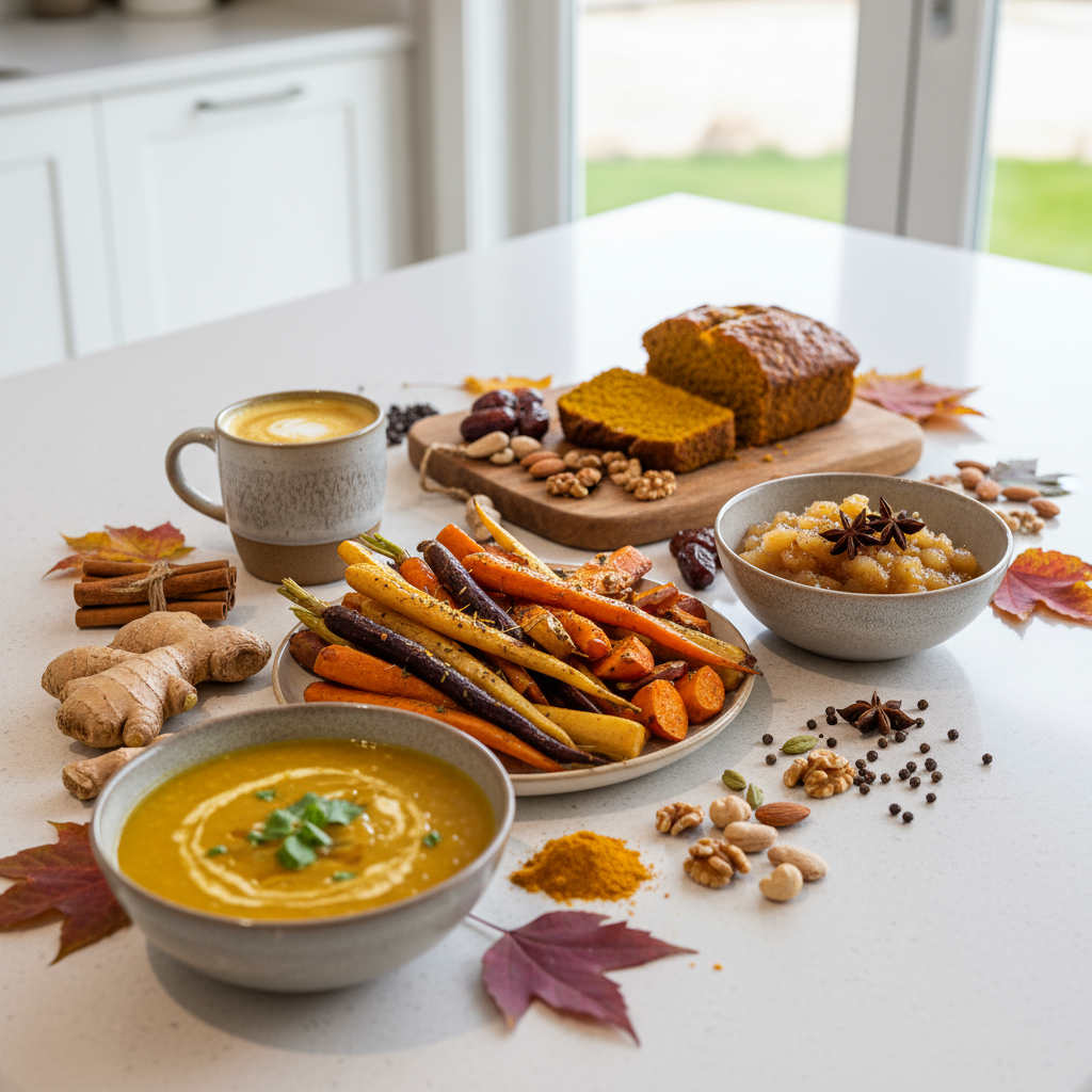 - Zentrale Lebensmittel: Besonders geeignet sind saisonales Wurzelgemüse (Karotten, Süßkartoffeln), Kürbisse, gekochtes Getreide (Reis, Hafer), hochwertige Fette (Ghee, Sesamöl) und wärmende Gewürze.