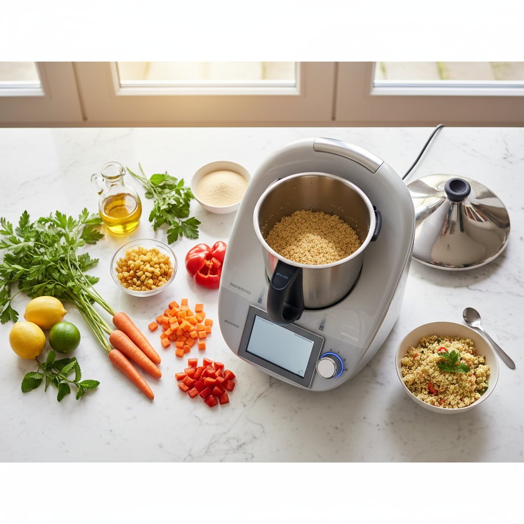 • All-in-One-Potenzial: Der Thermomix ermöglicht es, Couscous im Varoma zu garen, während im Mixtopf gleichzeitig eine passende Hauptspeise zubereitet wird.