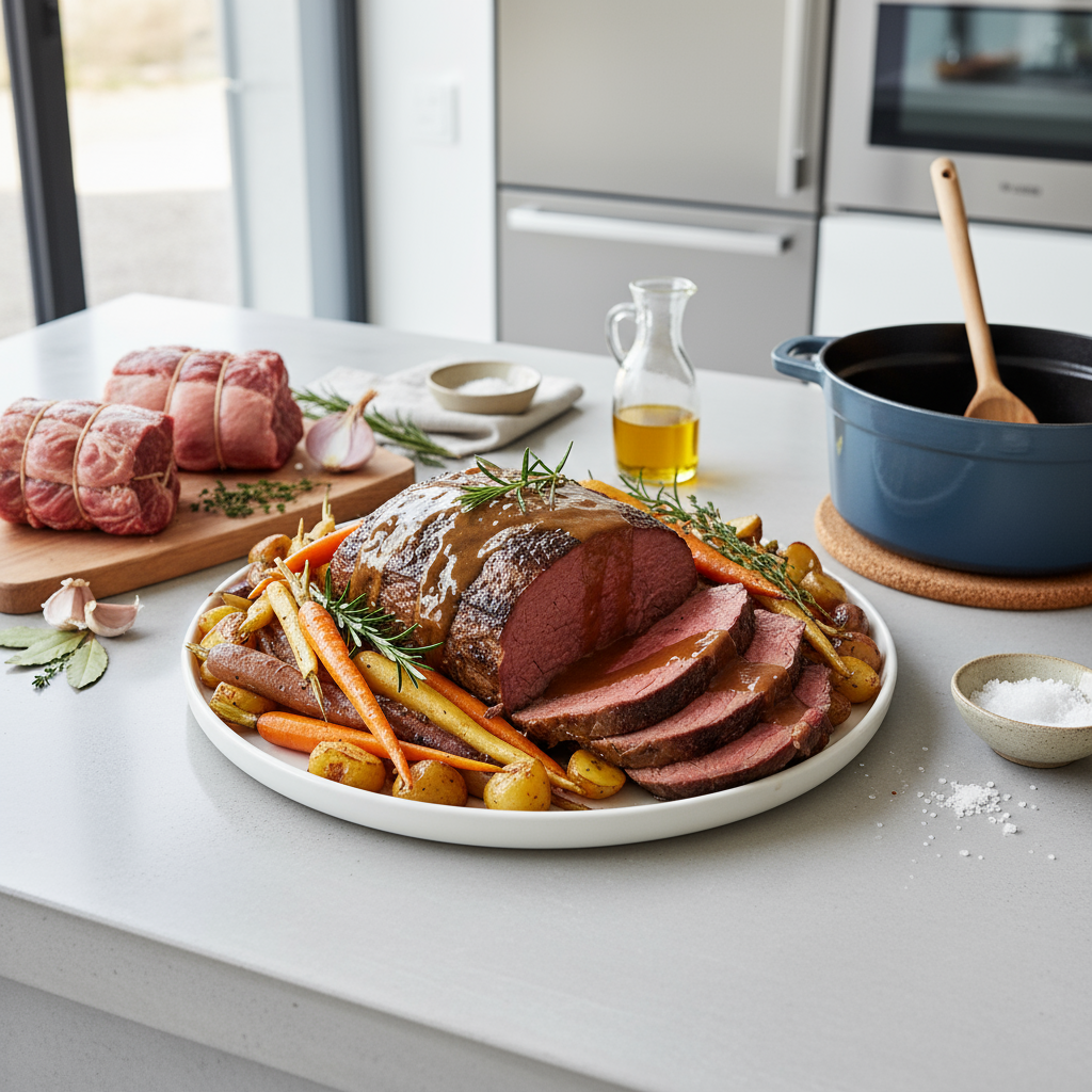 Ein Schmorbraten gelingt auch hervorragend ohne Alkohol. Rotwein dient primär dazu, Säure und komplexe Fruchtaromen beizusteuern. Als Ersatz kann man die gleiche Menge an qualitativ hochwertigem Traubensaft (rot) oder Apfelsaft verwenden, kombiniert mit einem Esslöffel dunklem Balsamicoessig, um die nötige Säure zu simulieren. Alternativ kann man auch einfach mehr kräftige Rinderbrühe oder Fond verwenden, um den Wein zu ersetzen und eine tiefe, fleischige Note zu erzielen.