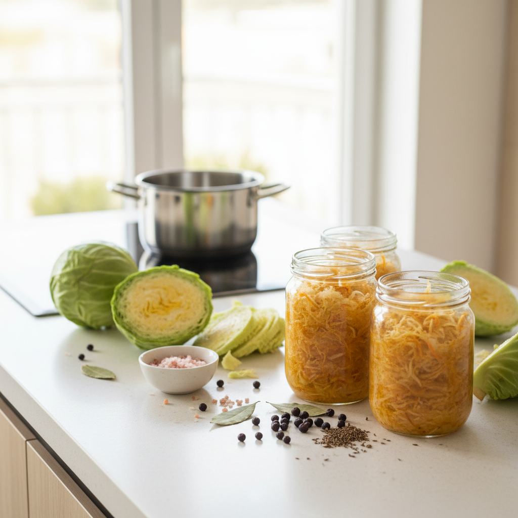 Das Haltbarmachen von fertig zubereitetem Sauerkraut ist ein strukturierter thermischer Prozess, der bei sorgfältiger Arbeitsweise sehr zuverlässige Ergebnisse liefert. Im Fokus stehen dabei die absolute Hygiene der Gläser, die korrekte Heißabfüllung sowie die präzise Einhaltung von Temperatur (90°C) und Zeit (30 Minuten). Die physikalischen Vorgänge der Ausdehnung bei Hitze und des Zusammenziehens bei Kälte sorgen für das rettende Vakuum, welches das Produkt vor äußeren Einflüssen abschirmt. Wenn man die kritischen Parameter beachtet und Faktoren wie Luft im Glas oder unsaubere Ränder vermeidet, steht einem großen Vorrat an haltbarem Kraut nichts im Wege.