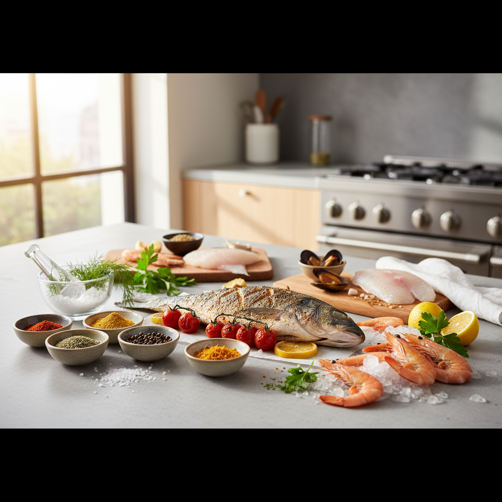 Fisch würzen bezeichnet den Prozess, Fisch und Meeresfrüchte mit Gewürzen, Kräutern, Salz und Säure zu verfeinern, um ihren Eigengeschmack zu unterstützen, zu ergänzen oder zu kontrastieren, ohne ihn zu überdecken. Das Ziel ist eine harmonische Balance, die die zarte Textur und den feinen Geschmack des Produkts hervorhebt.