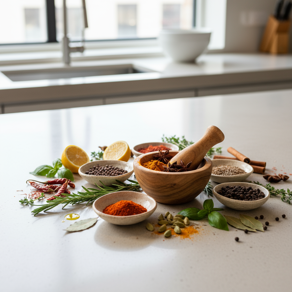 - ✅ Ganze Gewürze bevorzugen, da sie ihr Aroma länger halten.