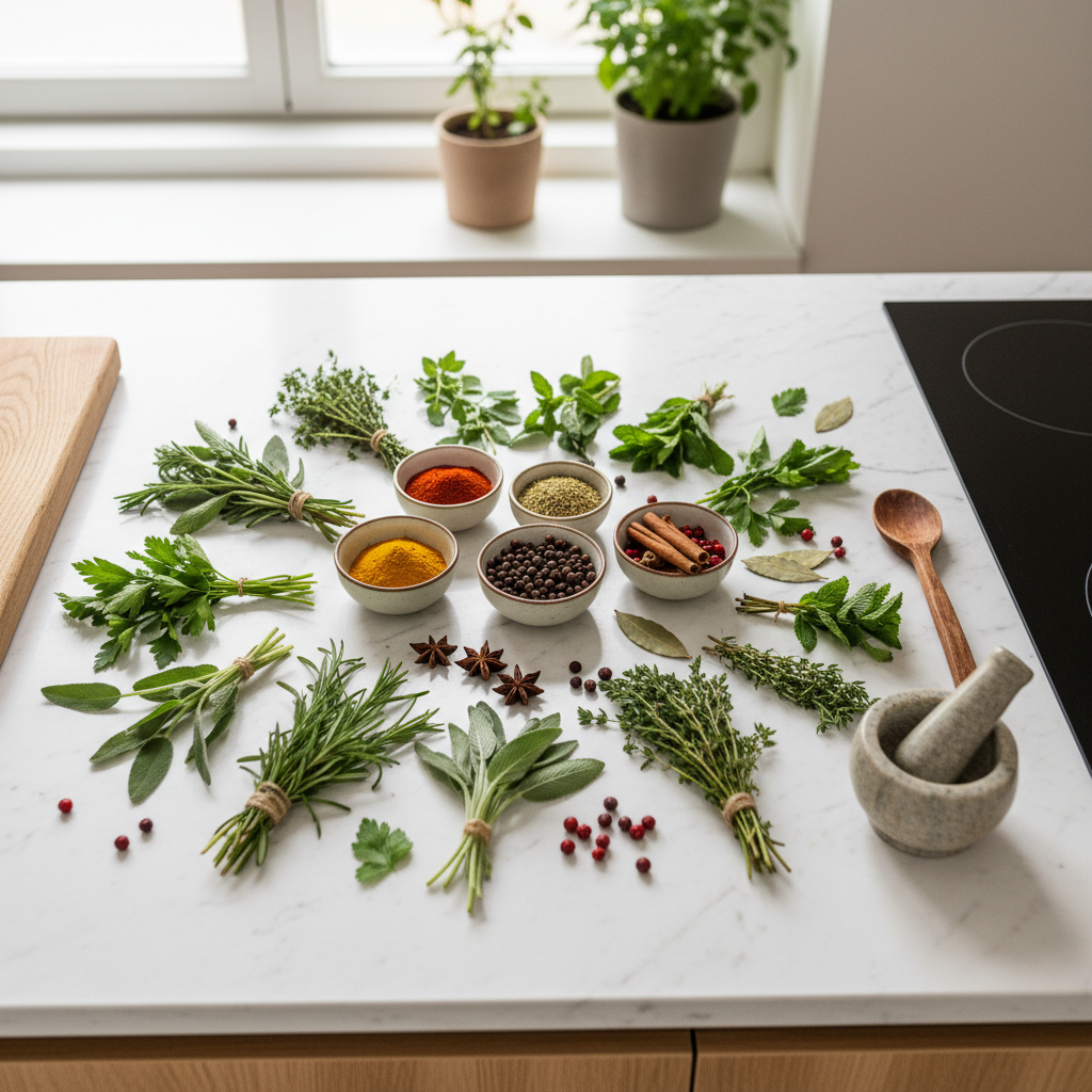 Die Kombination von Kräutern hängt stark vom gewünschten Geschmacksprofil ab. Eine klassische, harmonische Mischung für Suppen und Eintöpfe besteht aus Petersilie, Liebstöckel und Schnittlauch. Für mediterran anmutende Gerichte harmonieren robuste Kräuter wie Rosmarin und Thymian hervorragend, oft ergänzt durch Salbei. Eine frische Kombination für Salate oder Quark ist Dill, Petersilie und Schnittlauch. Grundsätzlich gilt: Kräuter mit ähnlichen Aromaprofilen (z.B. die „lauchigen“ Noten von Schnittlauch und Bärlauch) oder solche, die sich ergänzen (z.B. das erdige von Petersilie mit dem frischen von Dill), passen gut zusammen. Man sollte es aber vermeiden, zu viele dominante Kräuter wie Liebstöckel und Rosmarin gleichzeitig in hohen Dosen zu verwenden, da sie sich gegenseitig überlagern können.