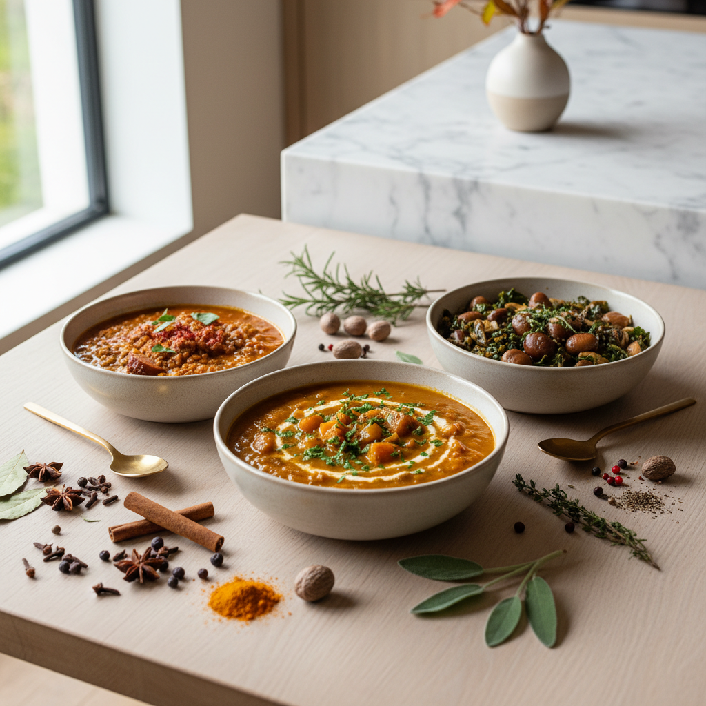 Während klassische Herbstgewürze ein Gefühl von Vertrautheit und Tradition vermitteln, kann die gezielte Verwendung von Gewürzen aus anderen Küchenkulturen einem Eintopf eine völlig neue, aufregende Dimension verleihen. Internationale Aromen können die Süße von Kürbis unterstreichen, die Erdigkeit von Linsen ergänzen oder einem einfachen Gemüseeintopf eine ungeahnte Tiefe geben. Wichtig ist hierbei, die Gewürze harmonisch zu integrieren, ohne den Grundcharakter des Gerichts zu überlagern. Gewürze wie Kreuzkümmel (Cumin), Koriandersamen, geräuchertes Paprikapulver (Pimentón de la Vera), Sternanis oder eine Prise Zimt können wahre Wunder wirken.