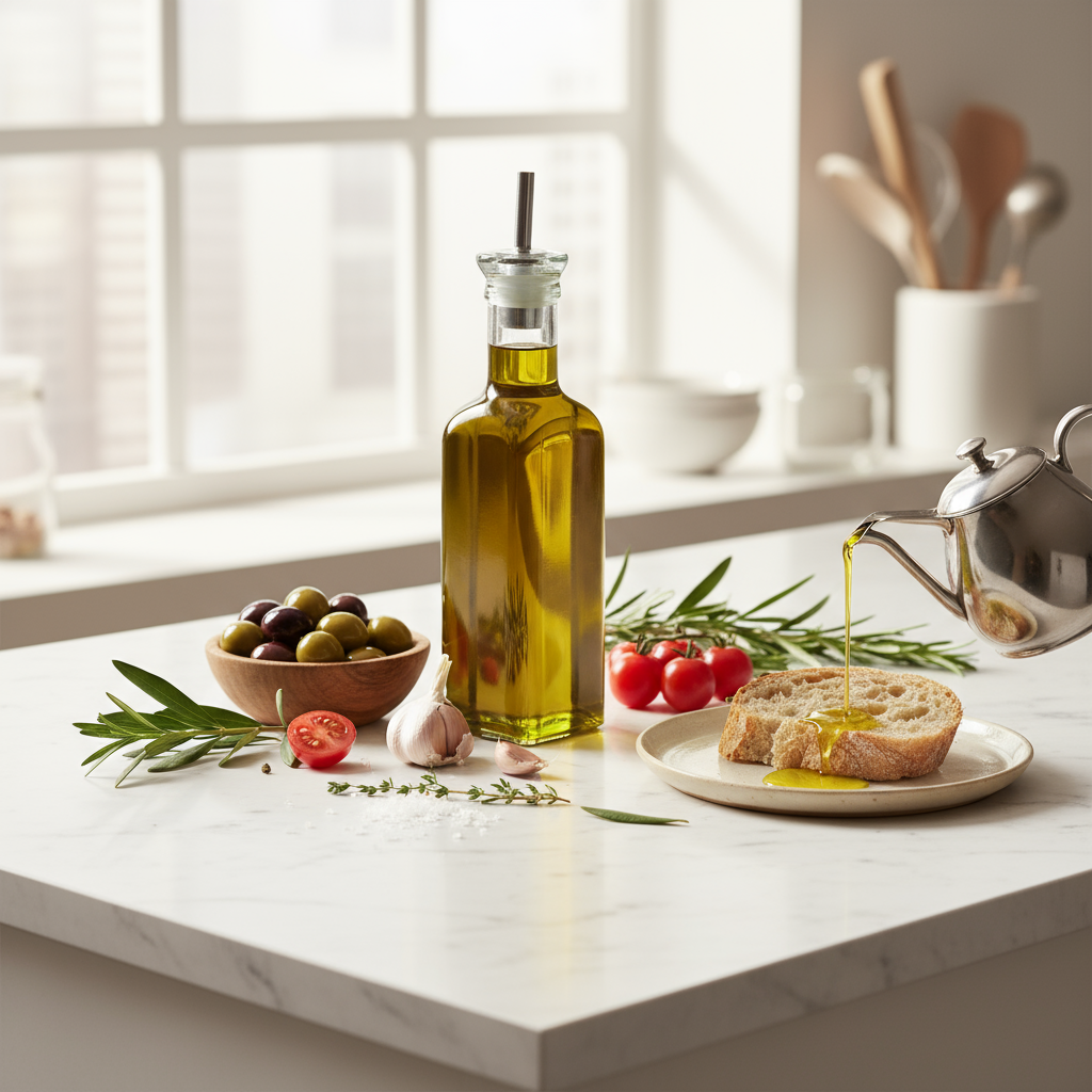 - Richtige Lagerung: Olivenöl muss vor seinen drei Hauptfeinden geschützt werden: Licht, Wärme und Sauerstoff. Eine dunkle Flasche an einem kühlen Ort ist ideal.