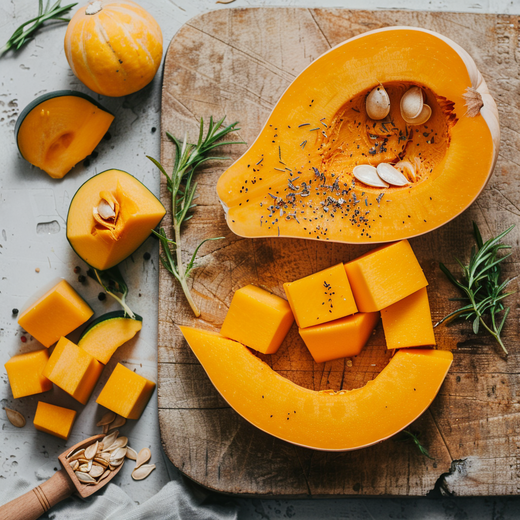 - Sicheres Schneiden: Ein großes, scharfes Messer und eine stabile, rutschfeste Unterlage sind entscheidend, um den harten Kürbis sicher zu zerteilen.