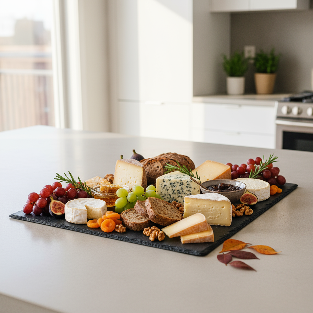 - Herbstliche Begleiter: Saisonale Zutaten wie frische Feigen, Birnen, Trauben, Walnüsse, Pekannüsse sowie Feigensenf oder Quittengelee ergänzen die Käsesorten ideal.