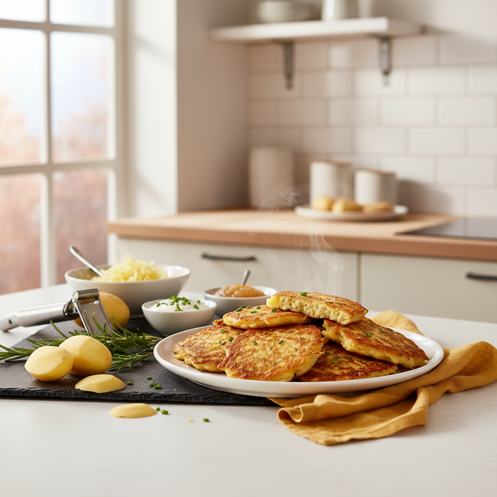 - Feuchtigkeit ist der Feind der Knusprigkeit: Das gründliche Auspressen der geriebenen Kartoffelmasse ist entscheidend, um zu verhindern, dass die Puffer in der Pfanne dämpfen statt braten.