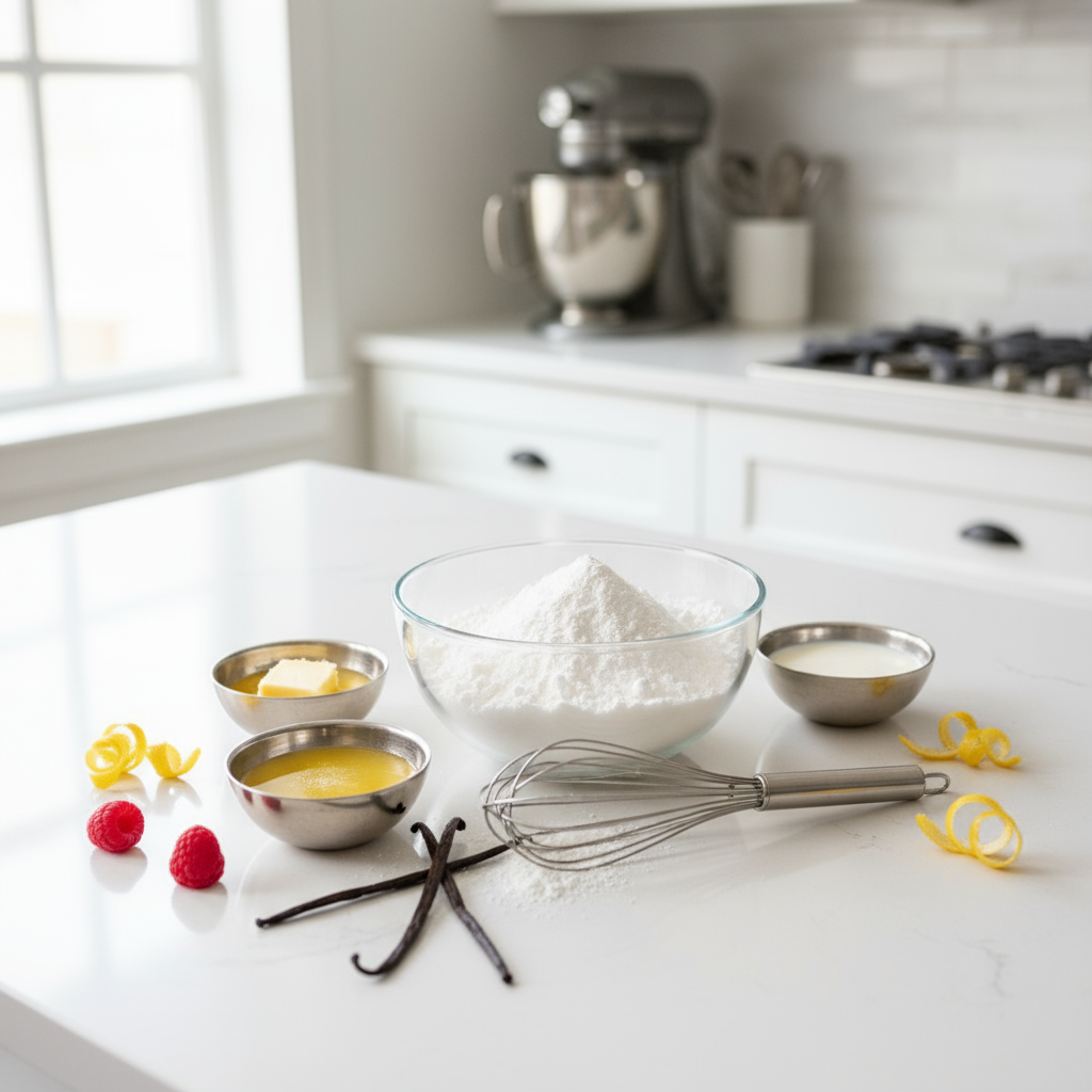 1. Vorbereitung (2 Min.): 250g Puderzucker sieben, um Klümpchen vollständig zu entfernen. Dies ist der entscheidende Schritt für eine glatte Textur. Benötigte Flüssigkeit (ca. 4-5 EL Wasser oder Zitronensaft) bereitstellen.