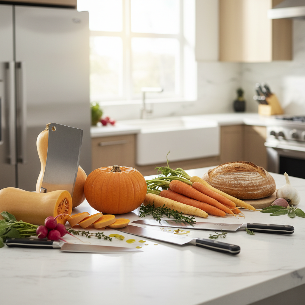 Dieser Artikel beleuchtet detailliert, welche Messertypen sich für die typischen Herbstgemüse eignen. Von der universellen Einsetzbarkeit eines Kochmessers über die Präzision eines Santokus bis hin zu Spezialwerkzeugen für besonders harte Fälle wird erklärt, welche Klinge für welche Aufgabe die richtige ist. Anhand konkreter Beispiele für Kürbis, Wurzelgemüse und Kohl werden die optimalen Schneidetechniken Schritt für Schritt erläutert, damit die herbstliche Küchenarbeit mühelos und sicher von der Hand geht.