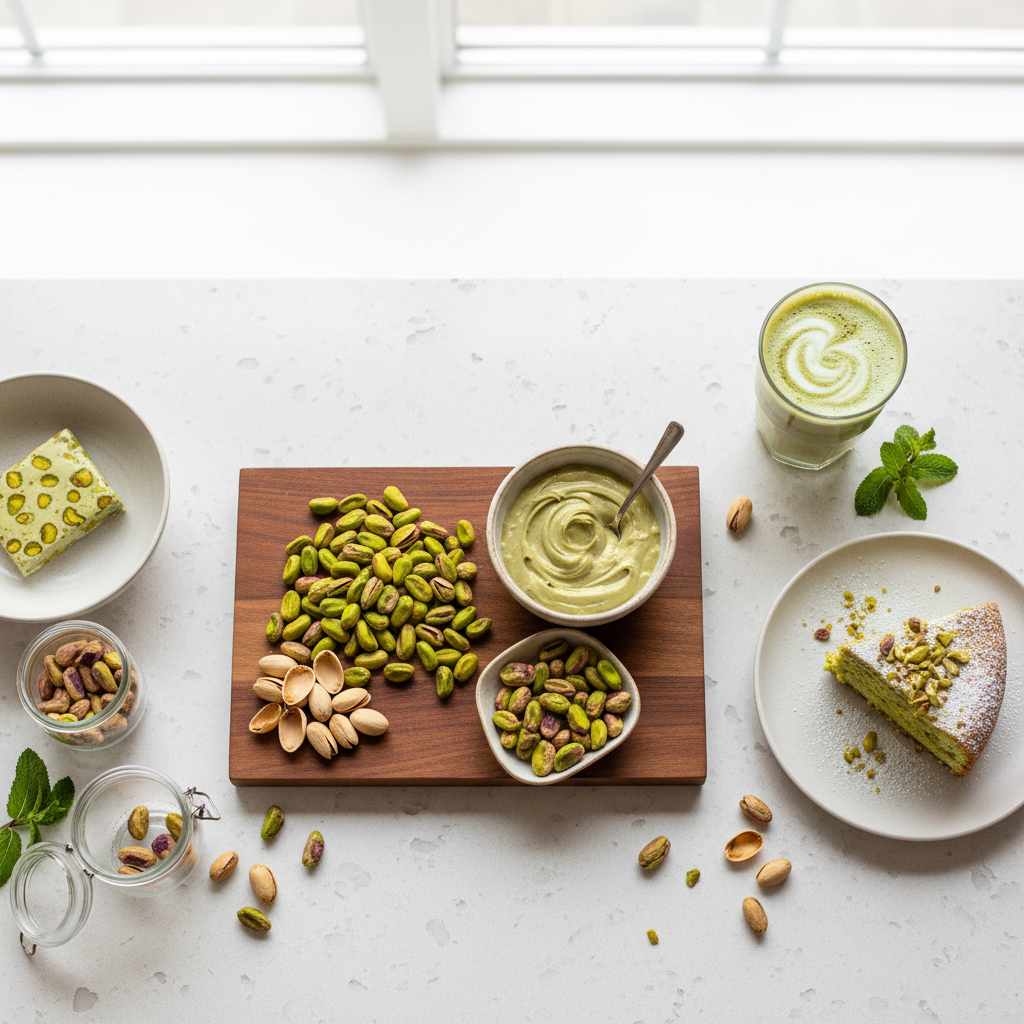 - Klassische süße Verwendungen: Pistazieneis, Baklava, Macarons, Cantuccini, Pralinenfüllungen, Torten und Kuchen.