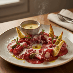 Ein Alpiner Bresaola Teller ist die Essenz der italienischen Produktküche: Wenige, aber qualitativ herausragende Zutaten verbinden sich zu einer Vorspeise, die ohne aufwendige Kochprozesse auskommt. Der Fokus liegt auf der Harmonie von würzigem, luftgetrocknetem Rindfleisch, dem pfeffrigen Aroma von frischem Rucola und den salzig-kristallinen Noten von echtem Parmesan. Dieses Rezept konzentriert sich auf die präzise Zubereitung und die Auswahl der richtigen Komponenten, um ein geschmacklich überzeugendes Ergebnis zu garantieren. Du erfährst hier nicht nur die genauen Schritte, sondern auch das technische „Warum“ hinter der Zubereitung – von der perfekten Emulsion des Dressings bis zur optimalen Anrichtung, die Textur und Aroma bewahrt. Wir analysieren, warum die Qualität der Einzelzutaten bei diesem Gericht nicht verhandelbar ist und wie du sie optimal zur Geltung bringst.