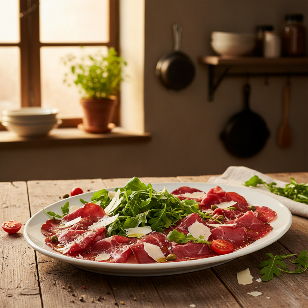 Alpiner Bresaola Teller: Würziges Rindfleisch mit Rucola & Parmesan