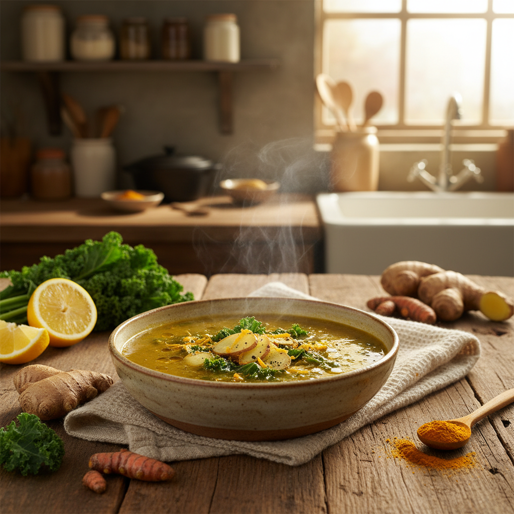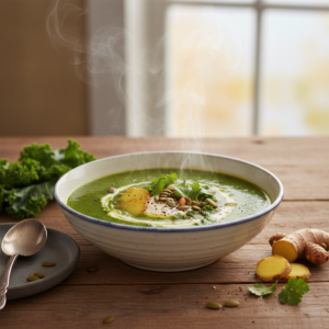 Aromatische Grünkohlsuppe mit Ingwer und Kurkuma