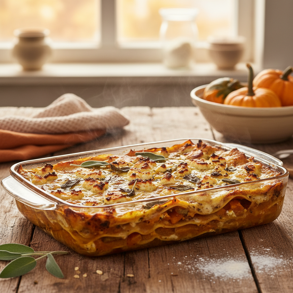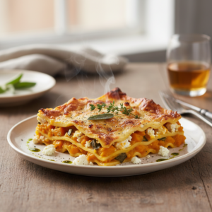 Lasagne gehört zu den Gerichten, die am zweiten Tag oft intensiver schmecken. Das liegt an der sogenannten Stärkeretrogradation: Die Pasta festigt sich beim Abkühlen, und die Aromen von Salbei und Knoblauch ziehen tief in die Kürbissauce ein.