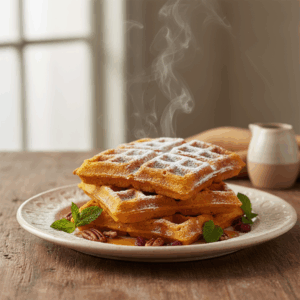 Aromatische Kürbiswaffeln mit Zimt und Puderzucker