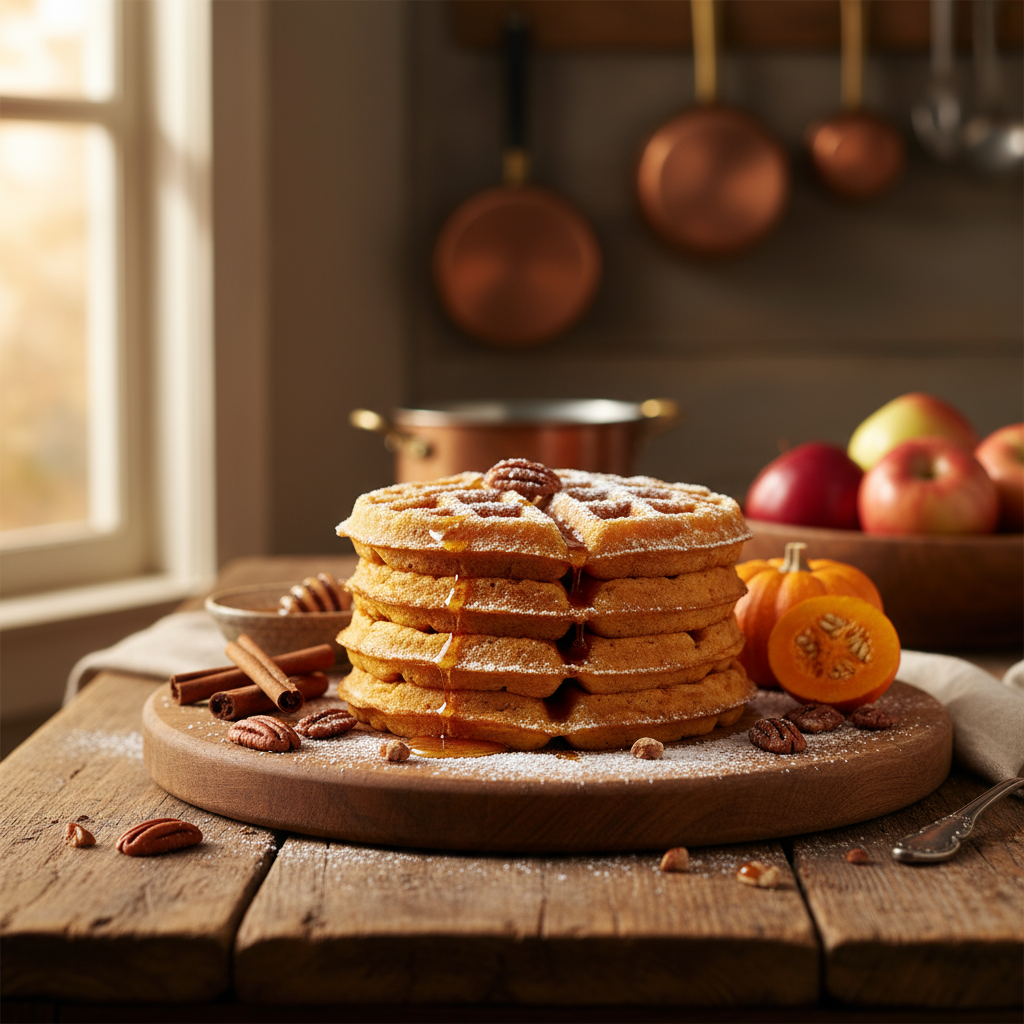 Aromatische Kürbiswaffeln mit Zimt und Puderzucker