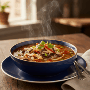 - Vegetarische Peking Suppe: Ersetze das Hähnchenfleisch durch eine größere Menge festen Tofu oder zusätzliche Pilze (z.B. Mu-Err-Pilze). Verwende eine hochwertige Gemüsebrühe als Basis.
