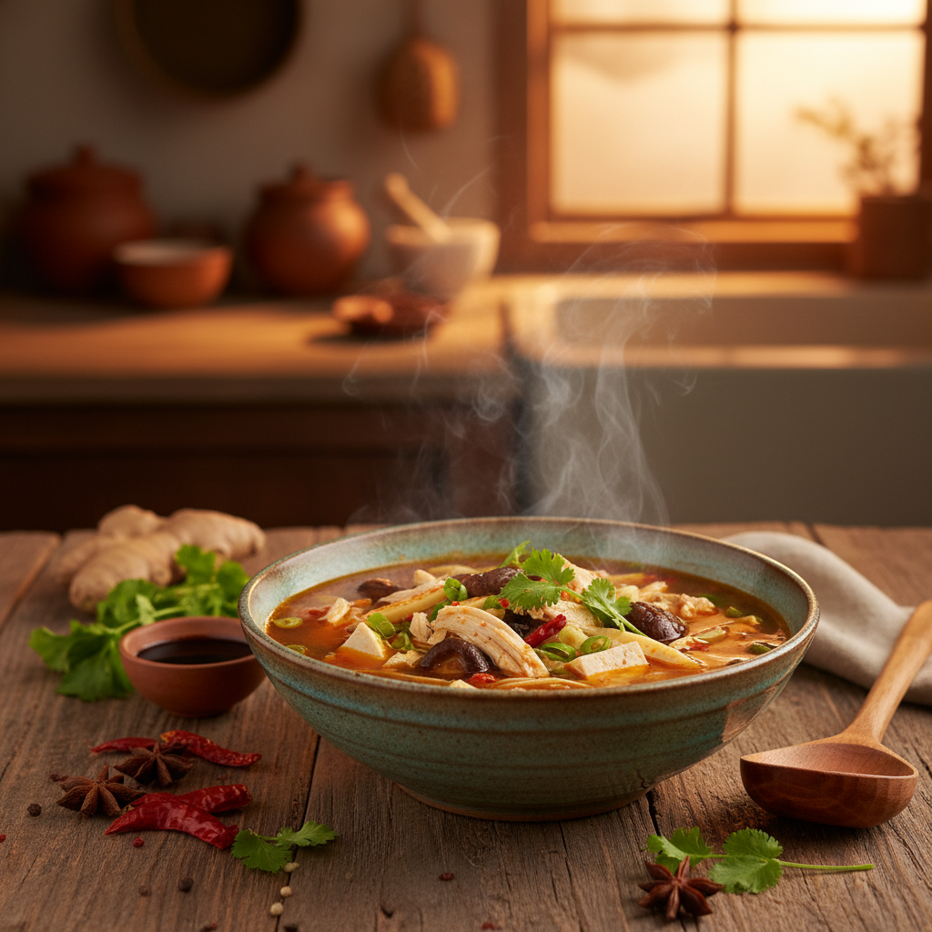 Die Peking Suppe, oft auch als Sauer-Scharf-Suppe bekannt, ist ein Grundpfeiler der chinesischen Küche. Ihre charakteristische Balance aus Säure und Schärfe, kombiniert mit einer seidigen, angedickten Konsistenz und vielfältigen Einlagen, macht sie zu einer ausgezeichneten Vorspeise oder einem leichten Hauptgericht. Dieses Rezept führt Dich präzise durch die Zubereitung einer authentischen Peking Suppe mit Hähnchen. Wir gehen über die reine Anleitung hinaus und erklären die entscheidenden Techniken, die für das Gelingen essenziell sind. Du lernst nicht nur, wie Du die Suppe kochst, sondern auch, warum bestimmte Schritte notwendig sind, um die perfekte Textur und den tiefen Geschmack zu erzielen – von der richtigen Verwendung von Speisestärke bis zur perfekten Technik für hauchfeine Eierfäden. Mit diesem Wissen gelingt Dir eine Suppe, die geschmacklich und handwerklich überzeugt.