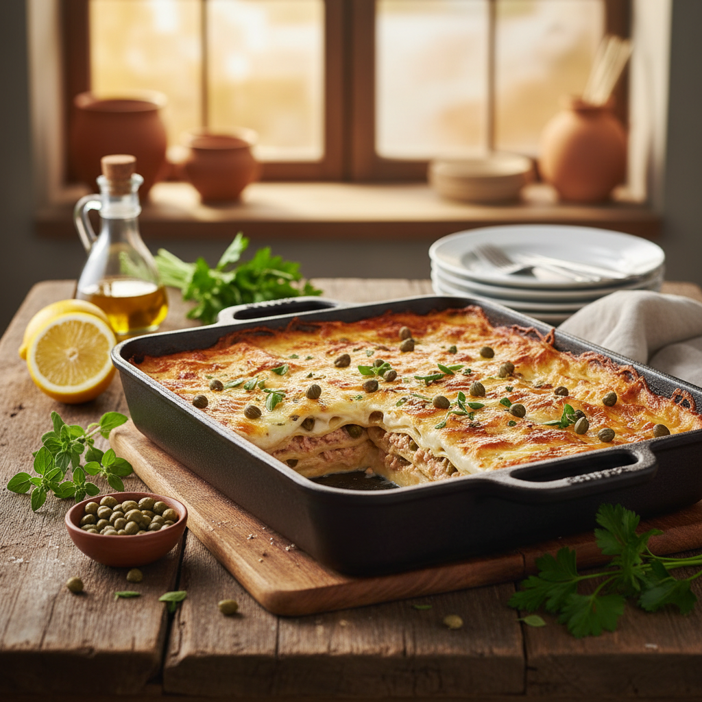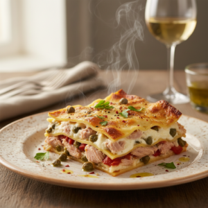 Aromatische Thunfisch-Lasagne mit Kapern und cremiger Béchamelsauce