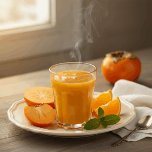 - Servieren: Den Kaki-Orangen-Saft sofort in Gläser füllen. Nach Belieben mit ein paar Eiswürfeln und einem frischen Minzzweig garnieren und genießen, um den vollen Nährstoffgehalt zu erhalten.
