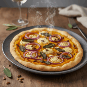 Aromatischer Kürbisflammkuchen mit roten Zwiebeln und Feta