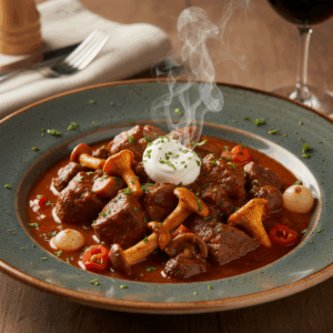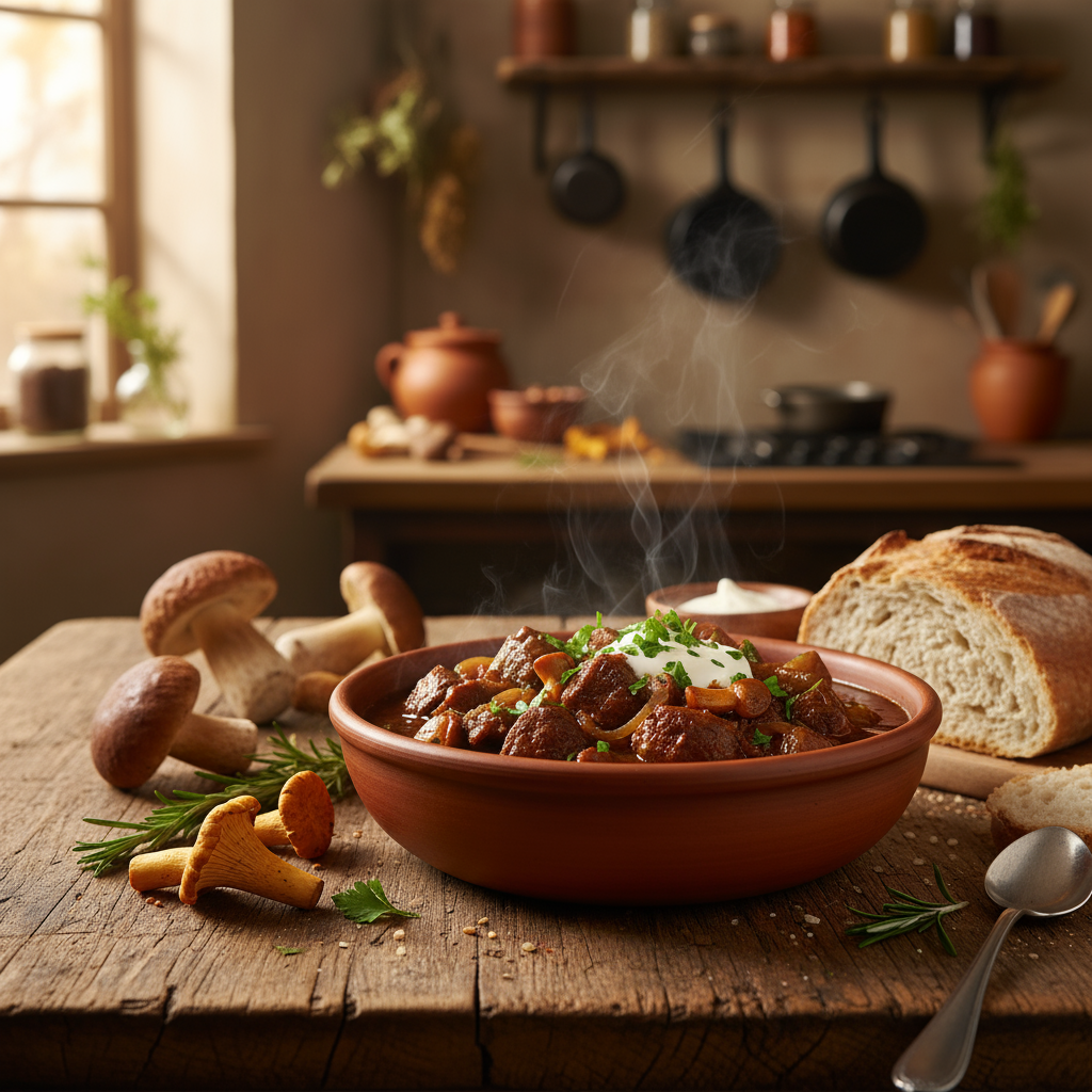 Rezept: Aromatischer Rindergulasch mit Waldpilzen