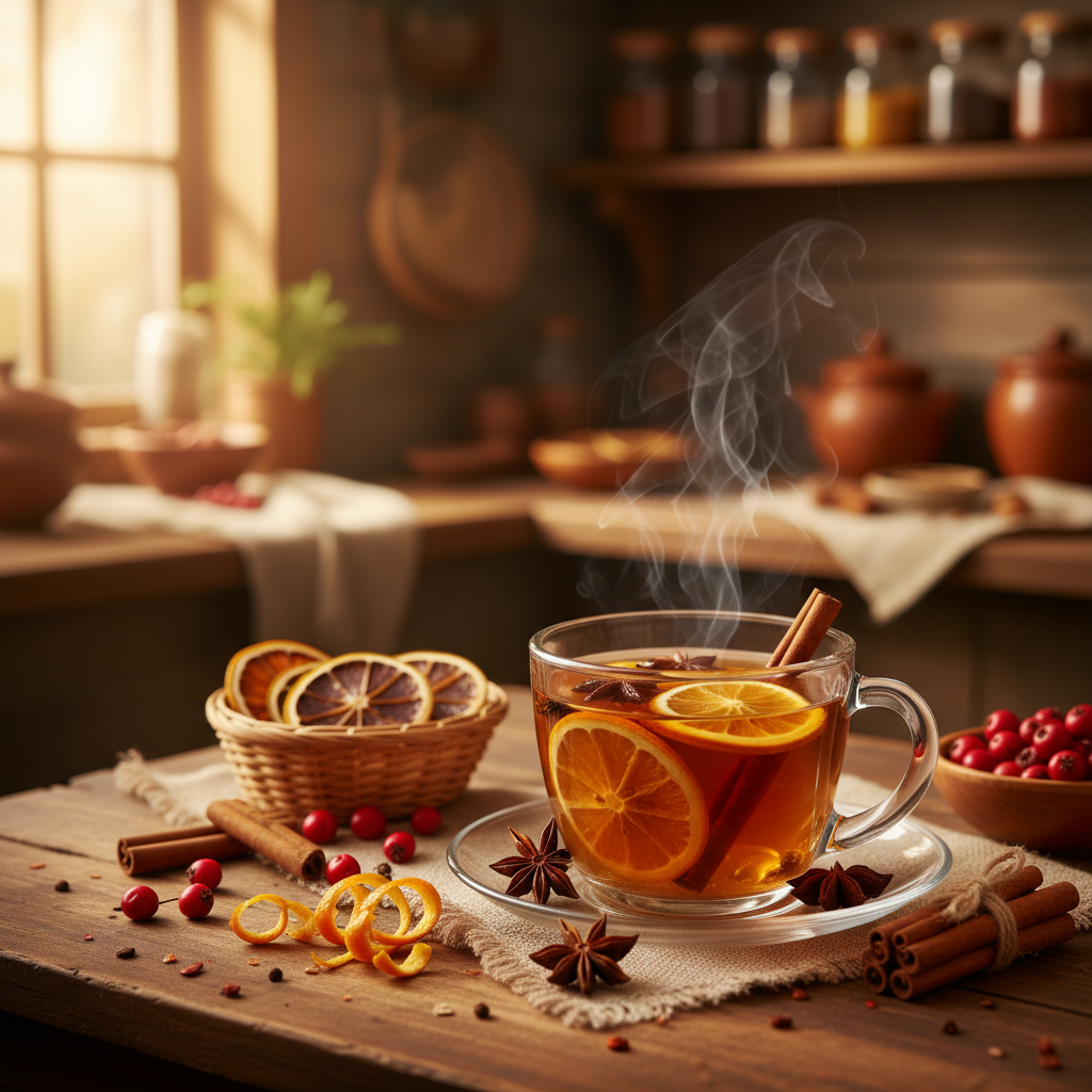 Aromatischer Weißdorn-Tee mit Zimt und Orange