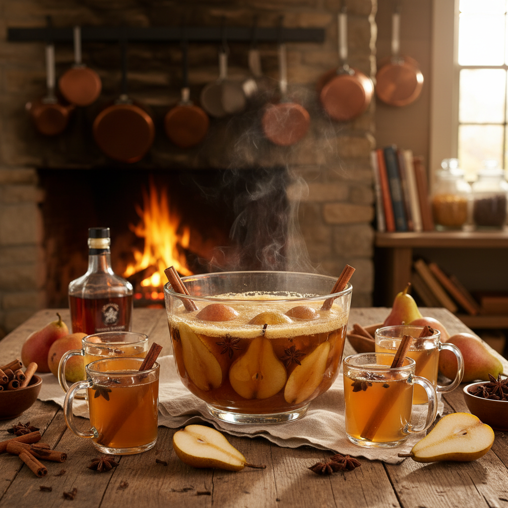 - Servieren: Den heißen Punsch auf hitzebeständige Gläser oder Tassen verteilen. Mit den frischen Birnenspalten garnieren und sofort servieren.