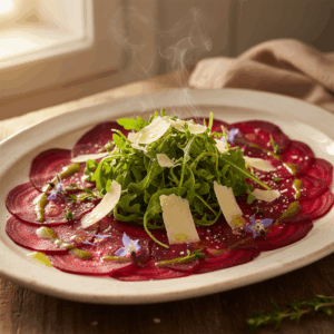 Aromatisches Rote-Bete-Carpaccio mit Rucola und Parmesan