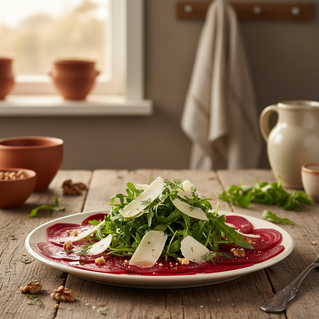Das Rote-Bete-Carpaccio ist eine vegetarische Interpretation des italienischen Klassikers, die durch ihre geschmackliche Tiefe und Einfachheit besticht. Es kombiniert die erdige Süße der Roten Bete mit der pfeffrigen Schärfe von Rucola, der salzigen Würze von Parmesan und dem nussigen Biss von gerösteten Walnüssen. Dieses Rezept ist nicht nur eine optisch ansprechende Vorspeise, sondern auch eine ausgewogene Komposition von Texturen und Aromen. In diesem Beitrag erhältst Du nicht nur eine präzise Anleitung, sondern auch das technische Wissen, um jede Komponente zu perfektionieren. Wir konzentrieren uns auf die Schlüsselfaktoren: die ideale Schnitttechnik für die Rote Bete, die Herstellung einer stabilen Vinaigrette und die bewusste Auswahl der Zutaten, die den Unterschied zwischen einem guten und einem herausragenden Ergebnis ausmachen. Bereite Dich darauf vor, ein Gericht zu meistern, das sowohl im Alltag als auch bei besonderen Anlässen überzeugt.