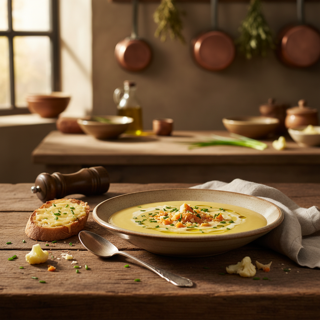 - Gemüsebrühe: Verwende eine hochwertige, klare Gemüsebrühe mit ausgewogenem Geschmack. Eine zu dominante oder salzige Brühe würde das feine Aroma des Blumenkohls und die Würze des Käses überdecken.