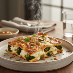Cremige Brokkoli-Lasagne mit nussiger Mandelbutter