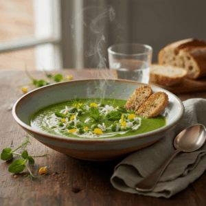 Cremige Erbsen-Minz-Suppe mit frischer Note