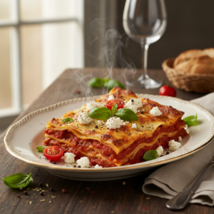 Cremige Lasagne mit Feta und aromatischer Tomatensauce