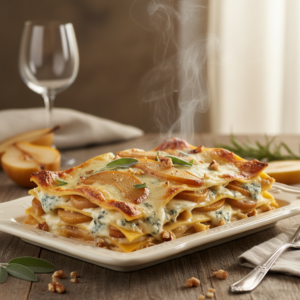 Cremige Lasagne mit Gorgonzola, fruchtigen Birnen und Walnüssen