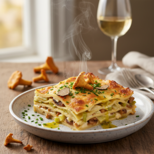 Cremige Lasagne mit Pfifferlingen und Lauch