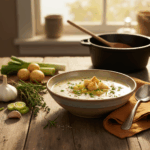 Klassiker sind eine exzellente Wahl. Frisch geröstete Croûtons mit Knoblauch und Kräutern bieten einen knusprigen Kontrast. Ein einfaches gegrilltes Käsesandwich (Grilled Cheese) zum Dippen ist eine perfekte Ergänzung. Auch frisches Baguette oder ein kräftiges Sauerteigbrot eignen sich hervorragend, um die letzten Reste der aromatischen Suppe aufzunehmen.