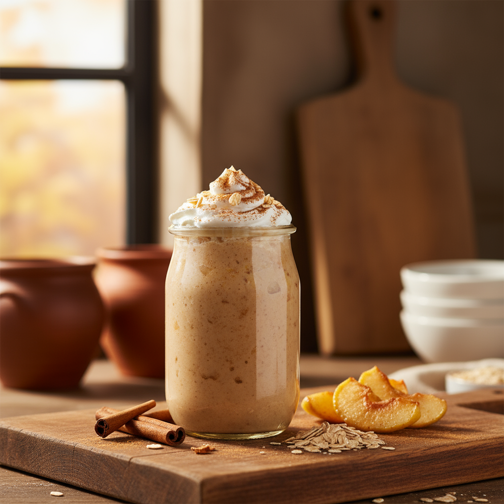Ein aromatischer und nahrhafter Smoothie, der die klassischen Aromen von Apfelstrudel in einem Glas vereint. Die Kombination aus saftigen Äpfeln, würzigem Zimt und kernigen Haferflocken sorgt für ein cremiges Geschmackserlebnis, ideal für ein schnelles Frühstück oder einen sättigenden Snack.