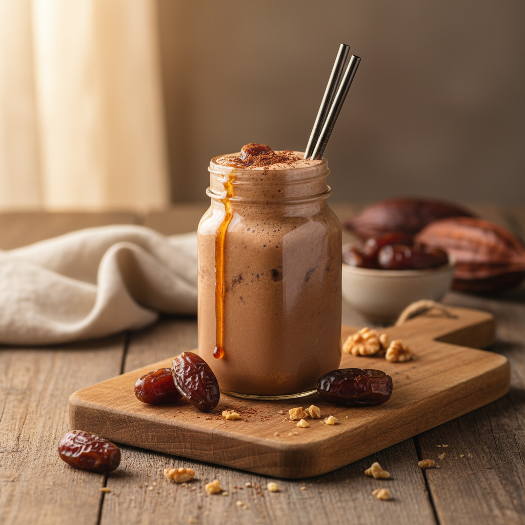 Dieser cremige Kakao Shake liefert ein intensives Schokoladenerlebnis, das ausschließlich auf der natürlichen Süße von Datteln basiert. Im Gegensatz zu Rezepten, die auf raffinierten Zucker oder Sirup zurückgreifen, nutzt diese Zubereitung die komplexen Aromen und die texturgebenden Eigenschaften von Medjool-Datteln und reifen Bananen. Das Ergebnis ist ein nährstoffreicher, sättigender Shake mit einer samtigen Konsistenz, die durch den gezielten Einsatz von Nussmus und einem leistungsstarken Mixer erreicht wird. In diesem Beitrag analysieren wir die Funktion jeder Zutat, erklären die entscheidenden Zubereitungstechniken für eine perfekt glatte Textur und zeigen, wie Du das Rezept an Deine Bedürfnisse anpassen kannst. Du lernst, warum die Wahl der richtigen Dattelsorte und die Reihenfolge der Zutaten im Mixer für das Endergebnis entscheidend sind.