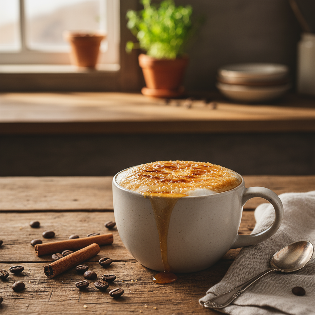 Cremiger Milchkaffee mit karamellisierter Zuckerkruste