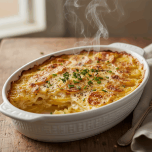 Cremiges Kartoffelgratin mit Muskatnuss und Käsekruste
