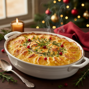 Cremiges Kartoffelgratin mit würziger Käsekruste und Rosmarin
