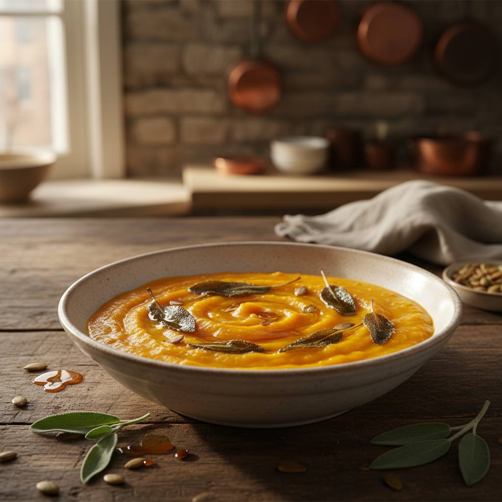 - Schlüssel-Tipp: Den Kürbis in heißer Gemüsebrühe garen, nicht in Wasser, um von Anfang an Geschmack aufzubauen.