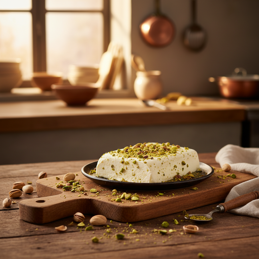 Cremiges Pistazien-Semifreddo mit gerösteten Nüssen