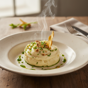 Dieses Rezept für cremiges Selleriemus kombiniert den erdig-würzigen Geschmack von Knollensellerie mit der bindenden Stärke von mehligkochenden Kartoffeln. Während reines Selleriepüree oft zu einer faserigen oder wässrigen Konsistenz neigt, sorgt die Zugabe einer kleinen Menge Kartoffeln sowie die Emulsion aus Sahne und Butter für eine stabile, samtige Textur. Ein Spritzer Zitronensaft und frische Muskatnuss runden das Geschmacksprofil ab und verhindern die Oxidation des Gemüses. In diesem Beitrag erfährst du, wie du durch technisches Verständnis und die korrekte Vorbereitung ein Püree auf Restaurant-Niveau herstellst.
