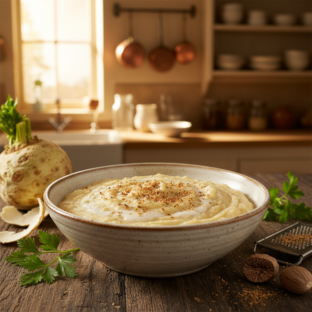 Cremiges Selleriemus mit Sahne und frischer Muskatnuss