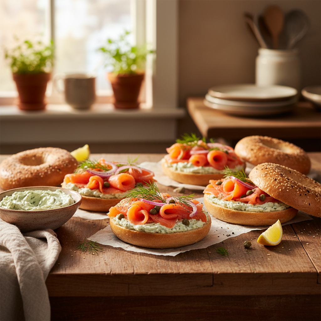 Klassisch wird ein **Sesam-Bagel** oder ein **Mohn-Bagel** verwendet. Der nussige Geschmack von Sesam harmoniert hervorragend mit dem Räucherlachs. Ein „Plain Bagel“ (Natur) ist ebenfalls möglich, bietet aber weniger aromatische Tiefe. Vermeide süßliche Varianten wie Zimt-Rosine, da diese geschmacklich kollidieren.